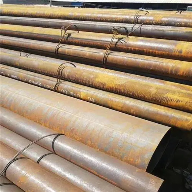 中卫gb3087无缝钢管要用钢锭或实芯管料经破孔制成毛管,随后经热扎、冷轧或冷拨制成。中卫gb3087无缝钢管在中国钢管业中具备重要的位置。据不完全统计,我国目前无缝管生产公司约240多家,无缝管机组约250多套,年产能力约450多万吨。从规格看,中卫gb3087无缝钢管的原料是圆管坯,圆管胚要经过切割机的切割制作成长短约为1米胚料,并经输送带送至溶炉内加温。钢坯被送进溶炉内加温,温度约为1200℃。燃料为氢气或乙炔。炉内温控是关键性的难题.圆管坯出炉后要经过压力穿孔机开展穿空。一般较常见的穿孔机是锥形辊穿孔机,这类穿孔机生产效率高,产品品质好,破孔扩径量多,可穿多种钢种。破孔后,圆管坯就先后被三辊斜轧、连轧或挤压。挤压后应脱管定径。定径机根据锥形钻头高速运转入钢胚打孔,产生钢管。钢管内径由定径机钻头的直径长短来决定。钢管经定径后,进入冷却塔中,根据喷水冷却,钢管经冷后,就要被校直。钢管经校直后由输送带送往金属探伤机(或压力试验)进行内部探伤。若钢管内部有裂痕,气泡等问题,将被检测出。钢管质检后还要通过严格手工选择。钢管质检后,用漆料喷上编号、规格、生产日期等。并由吊车吊入仓库里。